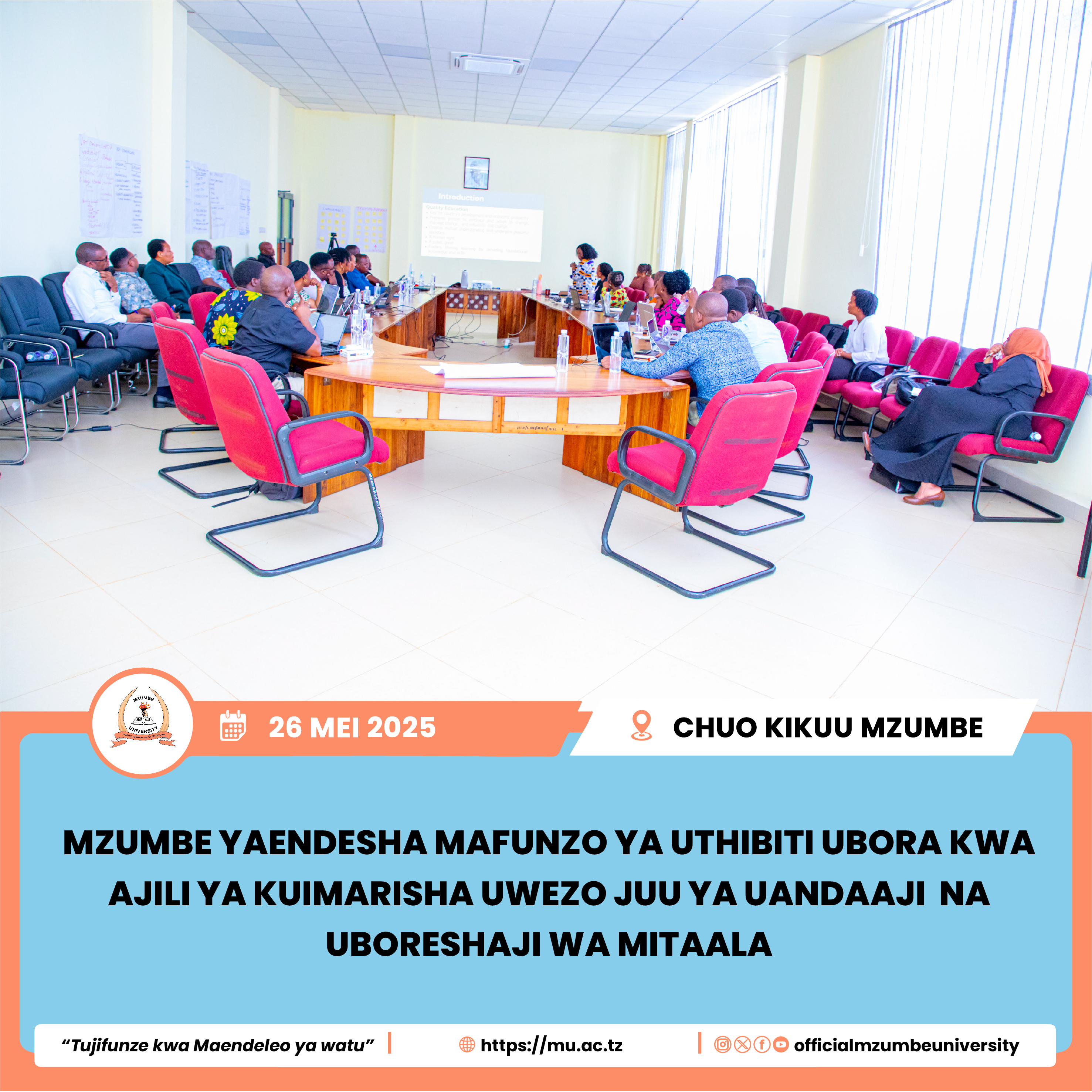 Chuo Kikuu Mzumbe kimeandaa mafunzo ya uthibiti ubora kwa wakuu wa idara za taaluma, waratibu wa uthibiti ubora na waratibu wa programu za kitaaluma, yaliyofanyika Kampasi Kuu, mkoani Morogoro na kujumuisha wawakilishi kutoka Kampasi za Mbeya na Dar es Salaam. Mafunzo hayo yaliyofunguliwa rasmi tarehe 26 Mei 2025 na Kaimu …