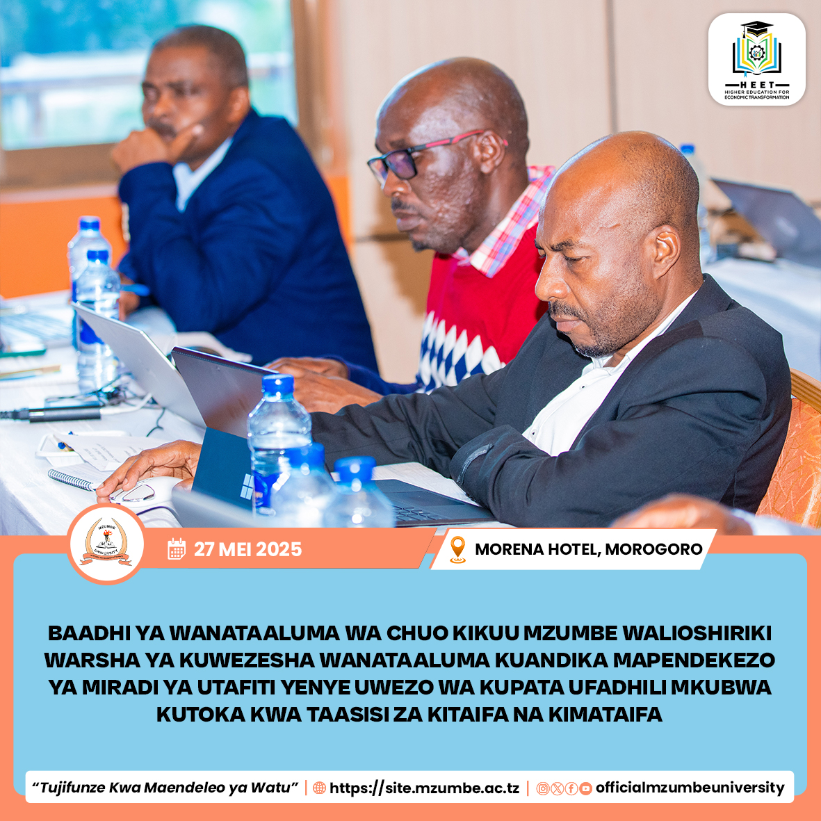 Chuo Kikuu Mzumbe kupitia Mradi wa Elimu ya Juu na Mageuzi ya Kiuchumi (HEET), kimeendesha warsha maalum ya siku mbili kuanzia tarehe 27 hadi 28 Mei 2025, Hoteli ya Morena yenye lengo la kuwawezesha watafiti na wahadhiri wake kuandika mapendekezo ya miradi ya utafiti yenye uwezo wa kupata ufadhili mkubwa kutoka kwa taasisi za kitaifa na kimataifa. Warsha hiyo imewaleta pamoja watafiti kutoka vitivo mbalimbali vya chuo hicho ili kuwajengea uwezo wa kitaalamu katika uandishi wa maombi ya ruzuku, mbinu za kutambua fursa za ufadhili, na jinsi ya kuandaa bajeti za utafiti zinazokidhi matarajio ya wafadhili. Akizungumza wakati wa ufunguzi wa warsha hiyo, Naibu Mratibu wa Mradi wa HEET Chuo Kikuu Mzumbe, Dkt.Lihoya Chamwali alisema kuwa warsha hii ni sehemu ya juhudi za chuo kuhakikisha kuwa tafiti zinazofanywa na watafiti wa Mzumbe zina mchango chanya katika maendeleo ya kijamii na kiuchumi kupitia matumizi ya ushahidi wa kisayansi. “Kupitia mradi wa HEET, tunalenga si tu kuimarisha miundombinu na mitaala ya elimu ya juu, bali pia kuwekeza kwa kiasi kikubwa kwa watafiti ili waweze kufikia viwango vya kimataifa katika ushindani wa ufadhili wa tafiti kubwa,” alisema Dkt. Chamwali. Naye, Kaimu Mkurugenzi wa Kurugenzi ya Utafiti, Machapisho na Masomo ya Uzamili Dkt. Nsubila Isaga, alisisitiza umuhimu wa uvumilivu na ustahimilivu katika mchakato wa kutafuta ufadhili wa tafiti. “Ni muhimu kuelewa kuwa si kila pendekezo la utafiti litapata ufadhili kwa mara moja. Lakini hilo halipaswi kuwakatisha tamaa watafiti. Endeleeni kujaribu, msichoke siku moja utafanikiwa. Wekeza muda wako katika kutafuta na kuboresha mapendekezo yako kila wakati,” alisema Dkt. Isaga. Kwa upande wake, Kaimu Mratibu wa Mradi wa HEET upande wa Kukuza Uwezo wa Utafiti na Ubunifu Tumishi, Prof. Mackfallen Anasel aliwashukuru waandaaji wa warsha hiyo kutoka Kurugenzi ya Utafiti, Machapisho na Masomo ya Uzamili (DRPS) pamoja na Mradi wa HEET kwa kufanikisha kwa ufanisi utekelezaji wa mpango mkakati wa Chuo Kikuu Mzumbe wa kuimarisha shughuli za utafiti. “Nawapongeza DRPS kwa kushirikiana na mradi wa HEET kwa kuandaa warsha hii muhimu inayotekeleza dhamira ya chuo ya kuhakikisha tafiti zinafanyika na kuleta matokeo chanya. Tafiti ni kichocheo kikubwa cha maendeleo, na zina faida kubwa siyo tu kwa chuo, bali pia kwa jamii na taifa kwa ujumla,” alisema Prof. Anasel. Mwezeshaji katika warsha hiyo, Prof. Frank Theobald aliwafundisha watafiti mbinu mbalimbali za kubuni na kuendesha tafiti zenye tija, zinazoweza kuleta mabadiliko chanya katika jamii. “Ni muhimu kwa watafiti kuelewa muktadha wa changamoto za kijamii na kiuchumi, na kutumia mbinu za kisayansi katika kutafuta majibu. Tafiti zenye tija huanzia kwenye wazo sahihi, muundo thabiti wa utafiti, na utekelezaji makini,” alisisitiza Prof. Theobald. Kwa kushirikiana na Mradi wa HEET, Chuo Kikuu Mzumbe kinaendelea kuwekeza katika maendeleo ya kitaaluma na kitaalamu ya watafiti wake ili kuhakikisha tafiti zinazofanyika siyo tu zenye ubora wa kimataifa, bali pia zinaakisi mahitaji ya maendeleo endelevu ya kijamii na kiuchumi.