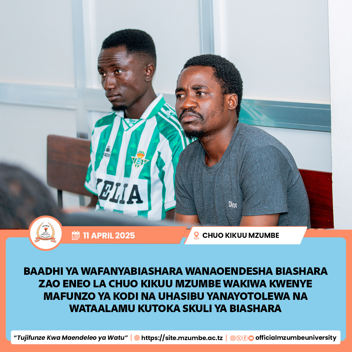 Wafanyabiashara wadogo wanaofanya biashara zao ndani ya Chuo Kikuu Mzumbe wamenufaika na mafunzo ya muda mfupi yaliyoandaliwa na Idara ya Uhasibu na Fedha kwa lengo la kuwaongezea uelewa juu ya masuala ya kodi, tozo pamoja na misingi ya uhasibu na fedha. Mafunzo hayo yamefanyika tarehe 11 Aprili 2025 na kufunguliwa rasmi na Amidi wa Skuli ya Biashara wa Chuo Kikuu Mzumbe Dkt. Gabriel Komba. Akizungumza wakati wa ufunguzi wa mafunzo hayo, Dkt. Komba alisisitiza kuwa elimu ya kodi na uhasibu ni nyenzo muhimu kwa wafanyabiashara wadogo kwani inawawezesha kusimamia biashara zao kwa tija, kufuata taratibu za kisheria na hatimaye kukuza mitaji yao kwa njia endelevu. Aliongeza kuwa Chuo Kikuu Mzumbe kupitia Skuli ya Biashara, kitaendelea kushirikiana na jamii inayokizunguka kwa kutoa mafunzo ya vitendo yatakayosaidia kuinua uchumi wa wananchi. Mafunzo hayo yalitolewa na wataalamu wa ndani ya chuo wakiwa na uzoefu katika nyanja za fedha na kodi. Dkt. Joseph Kiria, Mhadhiri na Mkuu wa Idara ya Uhasibu na Fedha aliwasilisha mada kuhusu umuhimu wa mafunzo ya uelewa wa kodi na tozo, pamoja na misingi ya uhasibu na fedha kwa wafanyabiashara wadogo. Katika mada hiyo, alisisitiza umuhimu wa kuwa na utaratibu mzuri wa usimamizi wa fedha ili kuongeza uwazi na ufanisi katika biashara. Aidha, Mtoa Mada ambaye pia ni Mkufunzi Msaidizi CPA Kiburi Mwita, alitoa mada kuhusu aina mbalimbali za kodi na tozo zinazowahusu wafanyabiashara wadogo, akieleza kuwa uelewa wa aina hizo ni muhimu kwao ili kuepuka migongano na mamlaka za serikali. Mafunzo hayo yalihitimishwa kwa mada kutoka kwa CPA Oscar Mchaki, Mhadhiri Msaidizi, ambaye alifanya tathmini ya utekelezaji wa kodi na tozo kwa wafanyabiashara, akitoa mapendekezo ya namna bora ya kuboresha mifumo ya ulipaji wa kodi kwa sekta isiyo rasmi. Washiriki wa mafunzo walionesha shukrani kwa fursa hiyo na walipata nafasi ya kuuliza maswali, kubadilishana uzoefu na kupata majibu ya changamoto wanazokutana nazo katika utekelezaji wa majukumu yao ya kila siku.