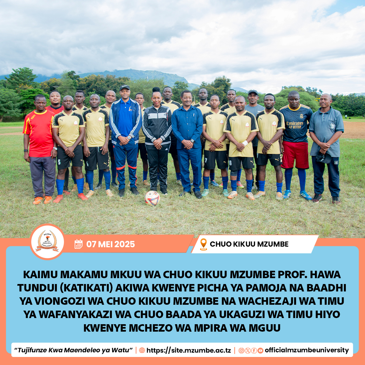 Chuo Kikuu Mzumbe kimeanza rasmi Kambi ya Ujasiriamali kwa shamrashamra za bonanza la michezo lililofanyika tarehe 7 Mei 2025, likihusisha michezo ya aina mbalimbali ambayo ilileta burudani na mshikamano miongoni mwa wanafunzi na watumishi wa chuo. Bonanza hilo lilifunguliwa rasmi na Kaimu Makamu Mkuu wa Chuo Prof. Hawa Tundui, ambaye alisisitiza umuhimu wa kushiriki michezo kwa ajili ya kuimarisha afya, kuhimiza ushirikiano na kujenga ari ya ushindani. “Michezo ni nyenzo muhimu ya kuimarisha afya ya mwili na akili, lakini pia hujenga mshikamano unaohitajika katika mazingira ya kujifunza na kufundisha,” alisema Prof. Tundui. Katika michezo hiyo ya kuvutia, timu ya mpira wa miguu ya wanafunzi iliibuka kidedea dhidi ya timu ya watumishi kwa ushindi wa bao 1-0 goli pekee likifungwa na Tibaigana Alfred, Mwanafunzi kutoka Skuli ya Utawala na Menejimenti (SoPAM). Katika mpira wa wavu upande wa wanawake, watumishi waliibuka na ushindi wa seti 3-0 dhidi ya wanafunzi. Michezo mingine iliyofanyika ni pamoja na mbio fupi za mita 100, kukimbia na gunia, kukimbiza kuku, kukimbia na yai pamoja na mashindano ya kukuna nazi, ambapo watumishi walionyesha umahiri na kuibuka na ushindi. Bonanza hilo pia lilishuhudia uzinduzi rasmi wa "Mzumbe Jogging Club" kikundi kipya cha mazoezi ya kukimbia kilichoanzishwa kwa lengo la kuimarisha afya, kuleta umoja na kuongeza ari ya mazoezi miongoni mwa wanajumuiya wa chuo. Washindi wa michezo mbalimbali walitunukiwa medali na makombe na mgeni rasmi Prof. Hawa Tundui. Bonanza lilihitimishwa rasmi na Naibu Makamu Mkuu wa Chuo – Mipango, Fedha na Utawala, Prof. Allen Mushi, ambaye alipongeza washiriki wote kwa ushiriki wao na kuhimiza kuendelezwa kwa utamaduni wa michezo chuoni. “Michezo si tu burudani bali ni sehemu ya kuimarisha utendaji, afya na mshikamano wa pamoja katika taasisi ya elimu ya juu,” alisema Prof. Allen Mushi. Kambi ya Ujasiriamali inaendelea hadi Mei 9, 2025, ikitarajiwa kuwa jukwaa la mafunzo, ubunifu na maendeleo ya ujuzi wa wanafunzi wa Mzumbe.
